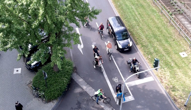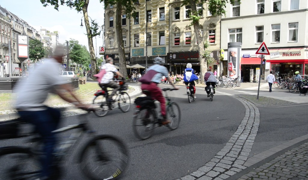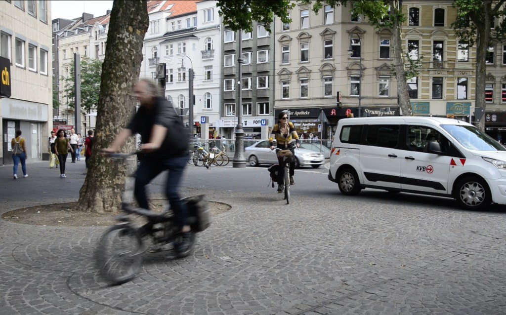 40 FahrrädfahrerInnen fahren die Kölner Ringe ab (von Süden nach Norden und zurück). Im Gepäck haben alle FahrerInnen ein Musikstück dabei, das synchron aus kleinen, im Rucksack mitgeführten Lautsprechern ertönt. In fahrenden Gruppen verbreiten die TeilnehmerInnen so ihre Soundwolken entlang der Ringe.