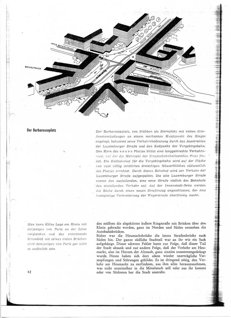 Er gilt als Paradebeispiel für Kölner Plätze, die keine Plätze sind: Der Barbarossaplatz ist im Laufe seiner jungen Existenz vollständig von Verkehrsflächen vereinnahmt worden, seine Umbauung führt ein Inseldasein zwischen Fahrspuren und Bahngleisen und die Luftbelastung dürfte eine der höchsten in Deutschland sein. Zuletzt hat eine aufsehenerregende Fernsehproduktion dem Platz als „leere Mitte einer ratlosen Gesellschaft“ ein Denkmal gesetzt (Über Barbarossaplatz).